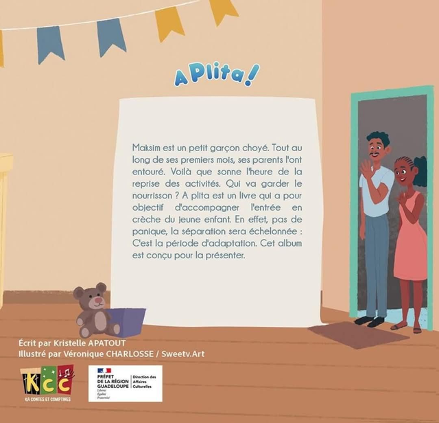 Maksim est un petit garçon choyé. Tout au long de ses premiers mois, ses parents l'ont entouré. Voilà que sonne I'heure de la reprise des activités. Qui va garder le nourrisson ? A plita est un livre qui a pour obiectif d'accompagner l'entrée en crèche du jeune enfant. En effet, pas de panique, la séparation sera échelonnée: